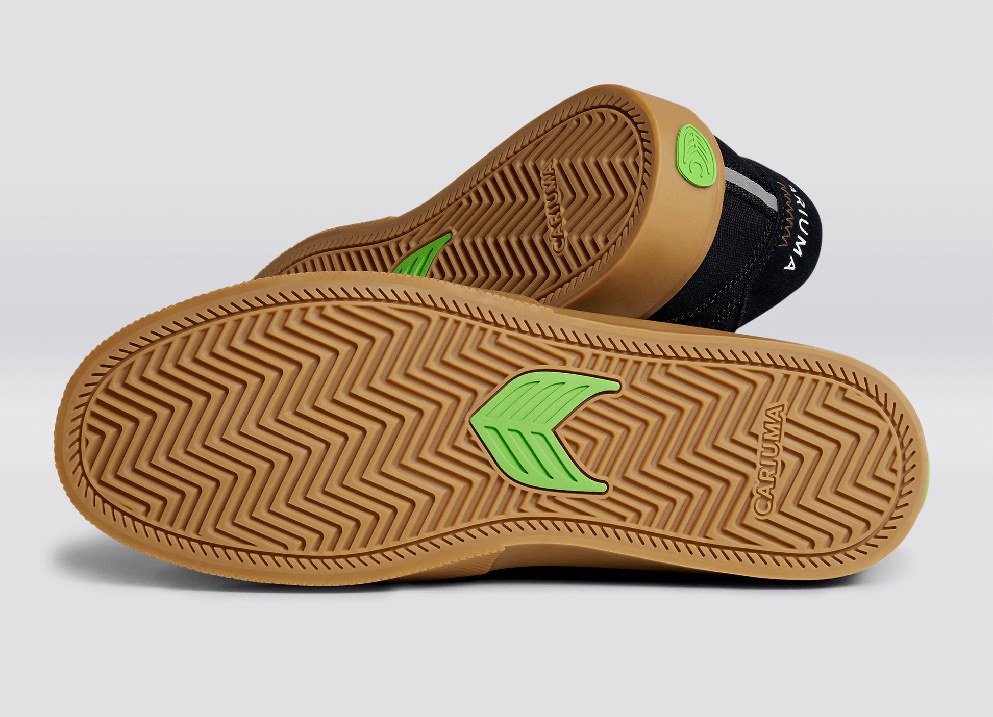 - Palmilha: Feita com óleo de mamona, cortiça de base biológica e lona de algodão orgânico.