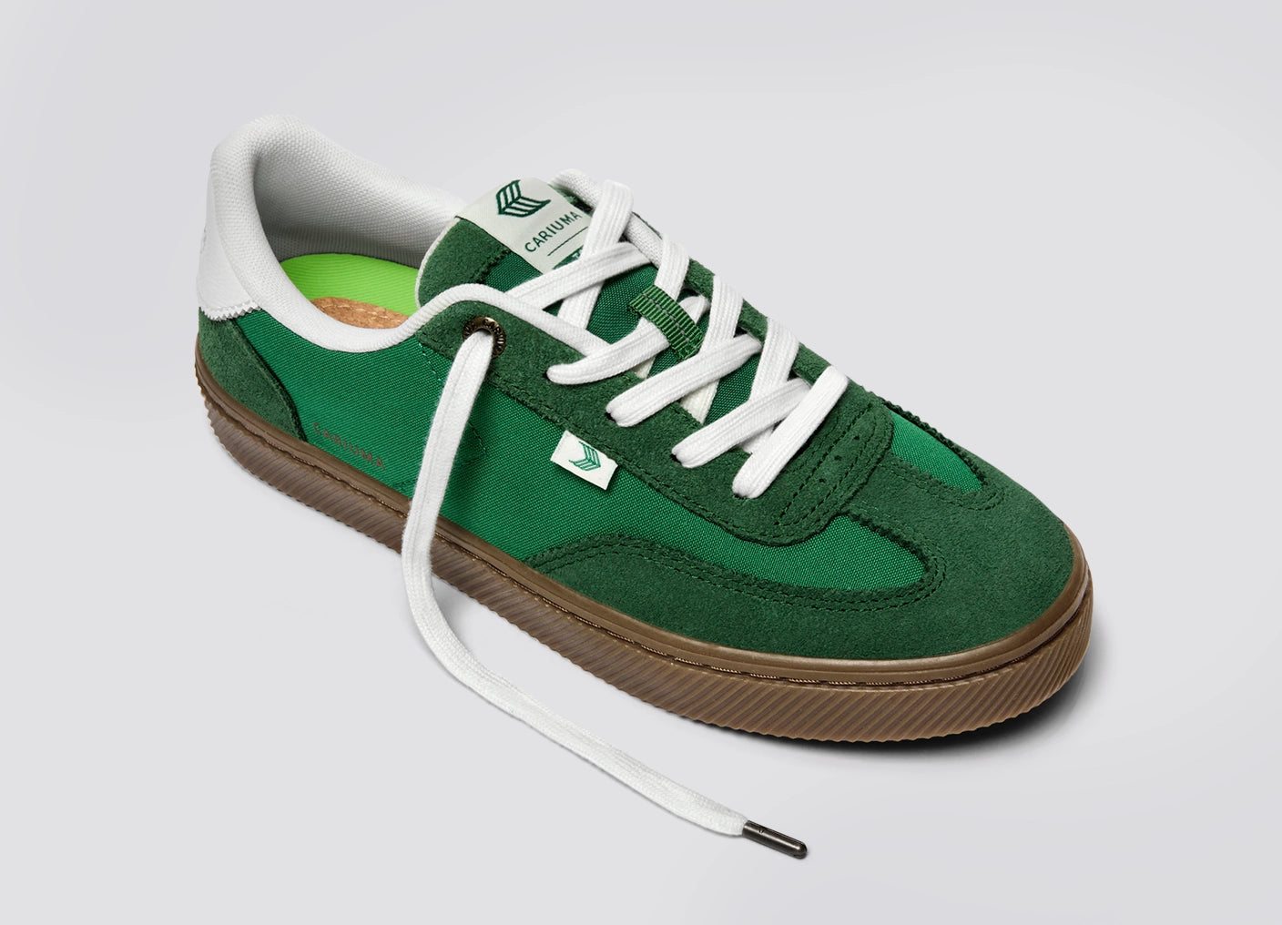 Cada par é cuidadosamente confeccionado com materiais de alta qualidade, incluindo couro e camurça certificados pela Leather Working Group (LWG) e nylon reciclado, garantindo não apenas um visual atemporal, mas também um compromisso com práticas sustentáveis.